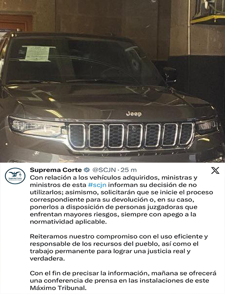 CIUDAD DE MEXICO, ESTADOS UNIDOS MEXICANOS, 26 de enero de 2026.-La compra de nueve camionetas de lujo blindadas por parte de la Suprema Corte de Justicia de la Nación no es un hecho aislado ni un simple tropiezo administrativo. Representa la erosión del discurso de austeridad que MORENA, el partido en el poder, ha utilizado como bandera moral y arma política. Mientras se repite que “no puede haber gobierno rico con pueblo pobre”, los ejemplos de excesos, lujos y privilegios dentro del oficialismo se acumulan con una naturalidad que ofende y exhibe una austeridad simulada.